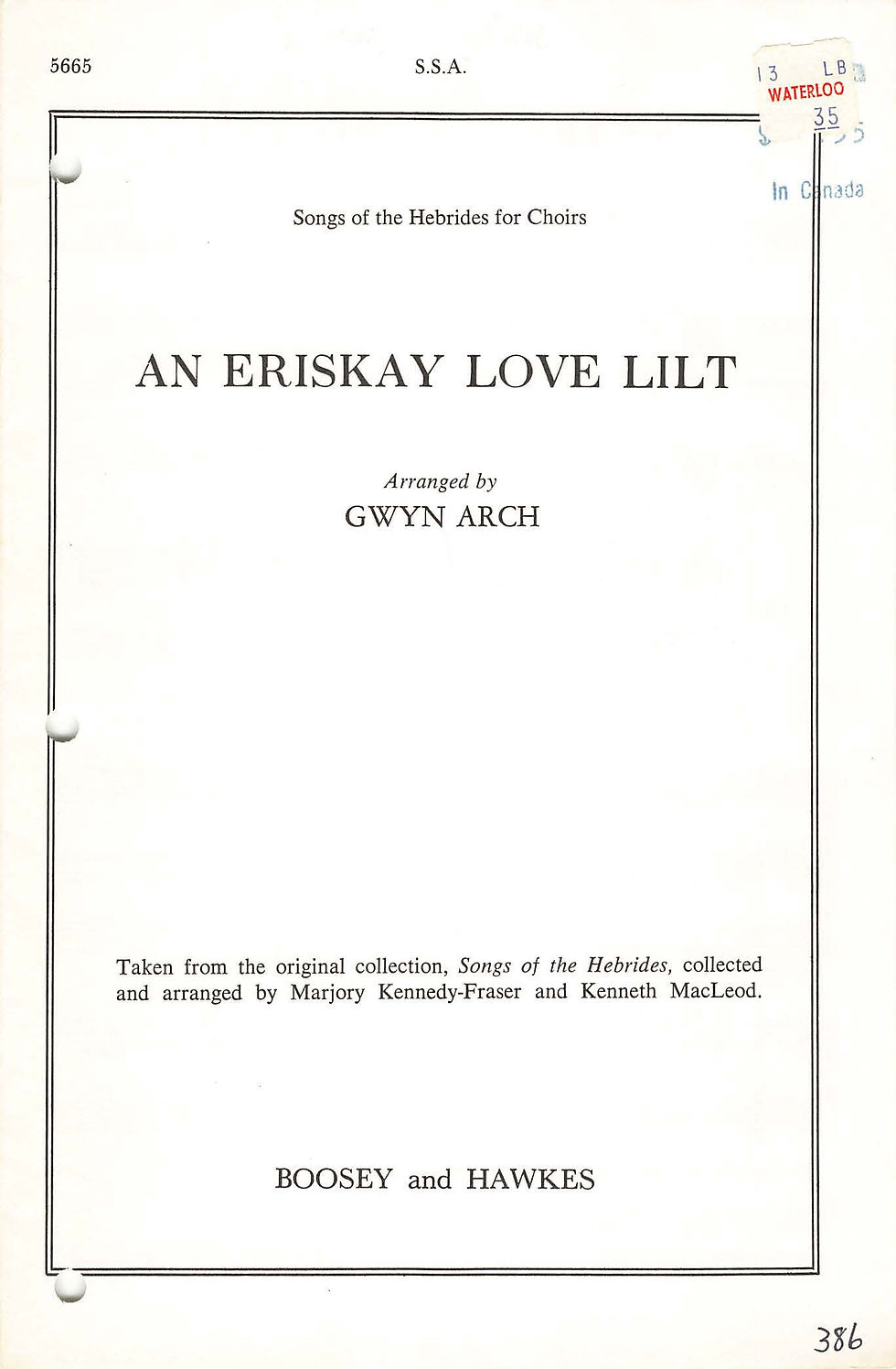 Remind borrowing choirs that SOCAN/Entandem* fees must be paid for choral performances so that royalties go back to composers/artists.